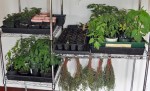Now we need to find room for them. I uprooted some mature herb plants that were in prime sunny spots to make room for tomatoes. I dried some of the herbs to store for cooking. I also put some in pots to replant in shadier areas.