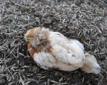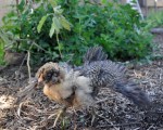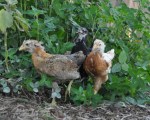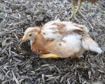 It was so warm, and the chicks have all their feathers, so I thought it would be a great day to go outside. We had a great time. They rolled in the dirt, eat clover, and used me as a jungle gym.