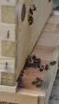 Looked in and the bees are almost done building out the 2nd story. Next day went to the honey co. to buy 2 more hives. I placed one on top of the existing hive and moved a panel of honey comb to the 3rd story. I checked the next day and they are working in the 3rd story. This is an exciting time at the growing urban farm.